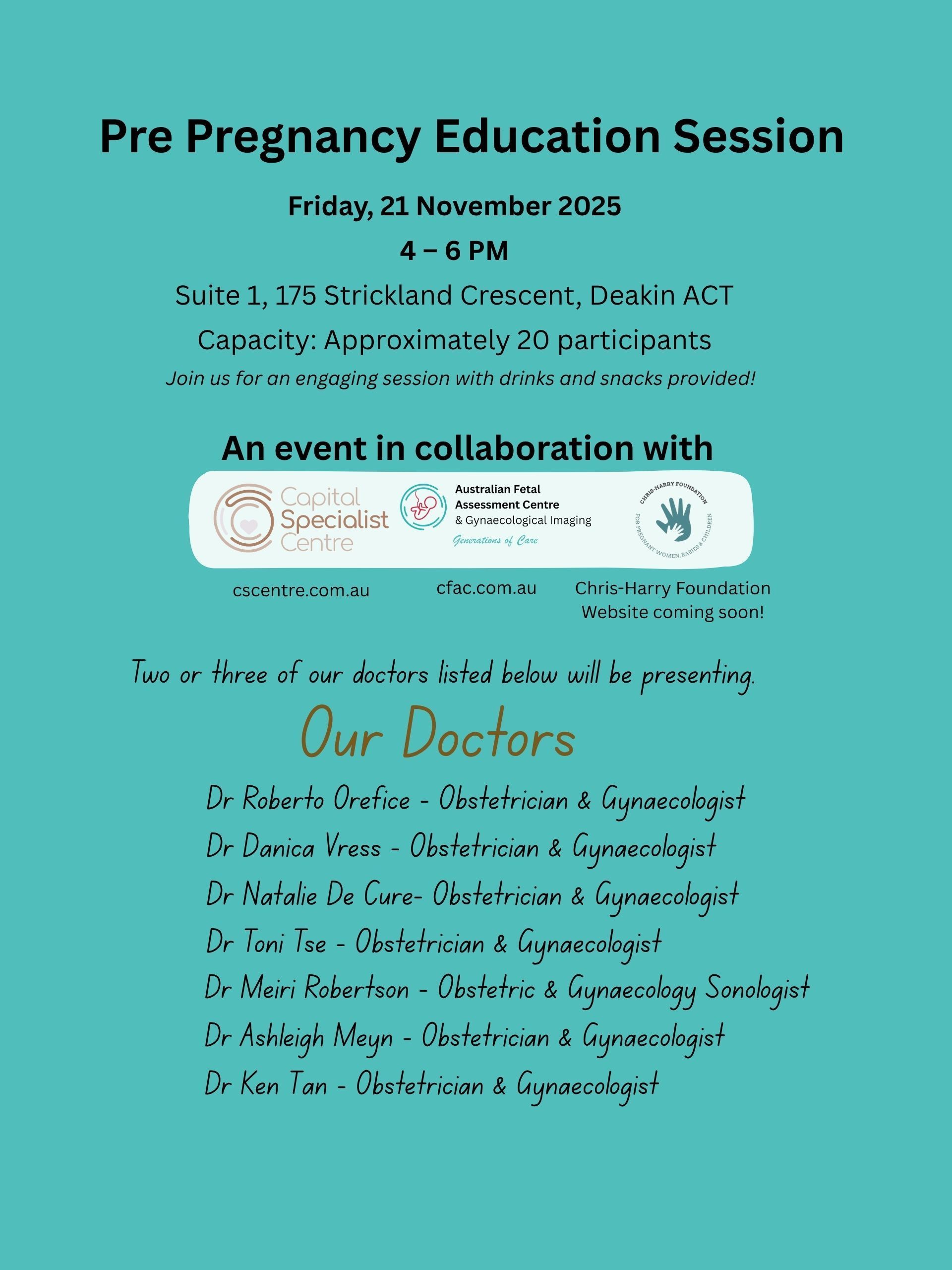 Whether you’re hoping to conceive soon or simply curious about what to expect, you’ll leave feeling more empowered and supported on your journey.